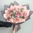Букет из розовых роз и альстромерий