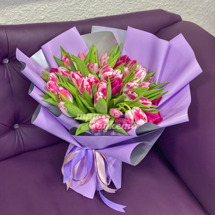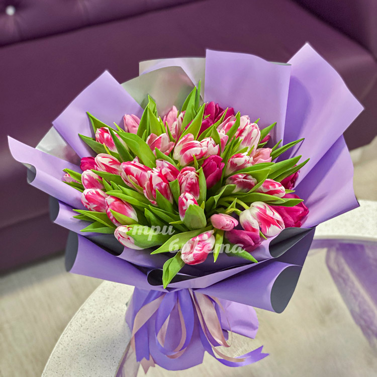 - Розово-белые тюльпаны, 35 шт.