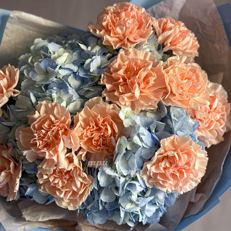 Букет из гортензий и персиковых диантусов