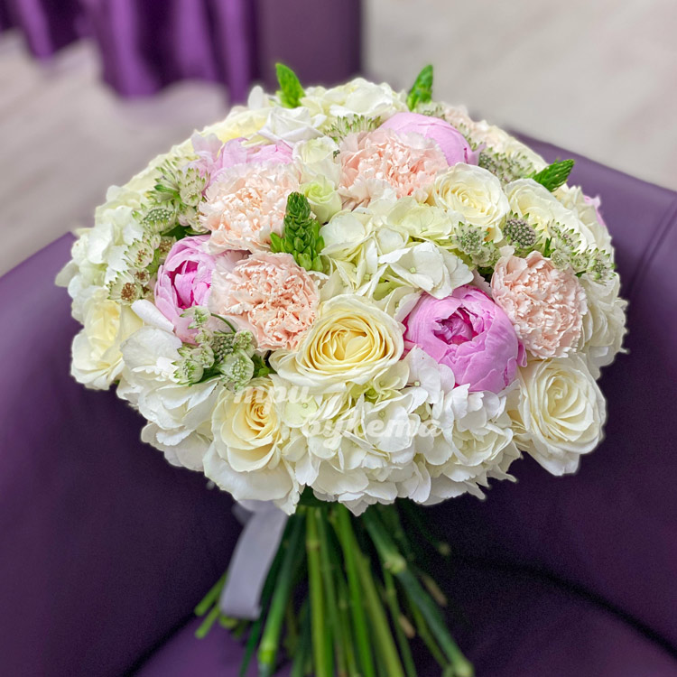Букет из пионов и белой гортензии