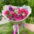 Букет красных кустовых роз с зеленью