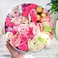 Композиция гербер и эстом в коробке
