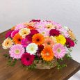 Композиция ярких цветов в шляпной коробке