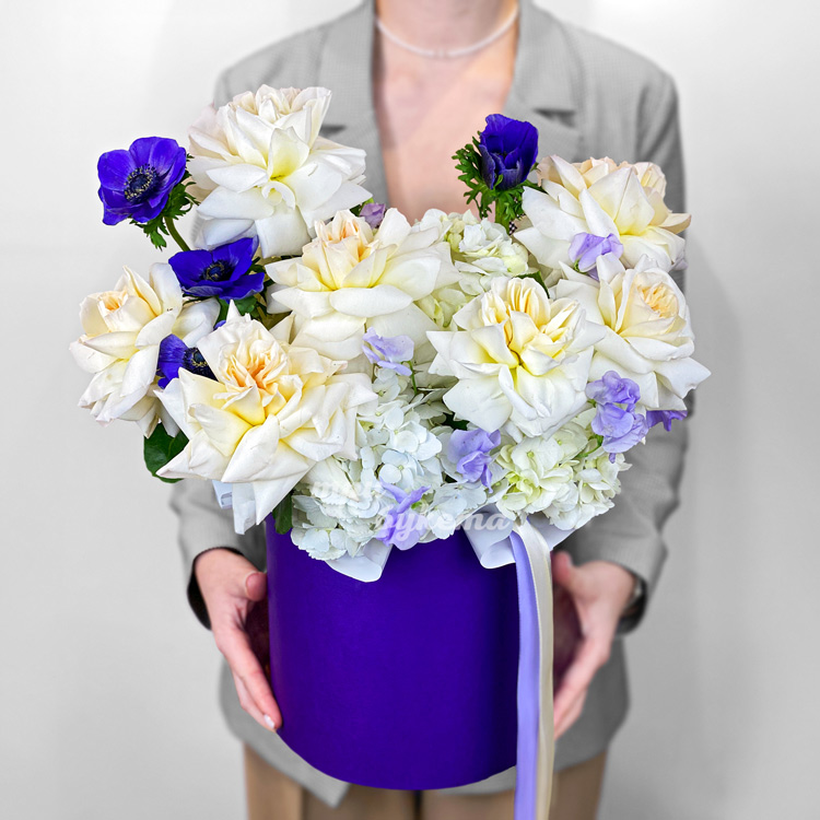 Коробка французских роз с анемонами