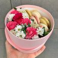 Коробка из эустом, сирени и макарунами