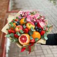 Корзина цитрусовых с розами и гвоздиками