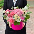 Корзина кустовых розовых роз