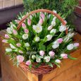 Корзина ярких роз, гвоздик и орхидей