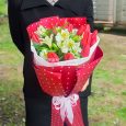 Красные тюльпаны и белые розы