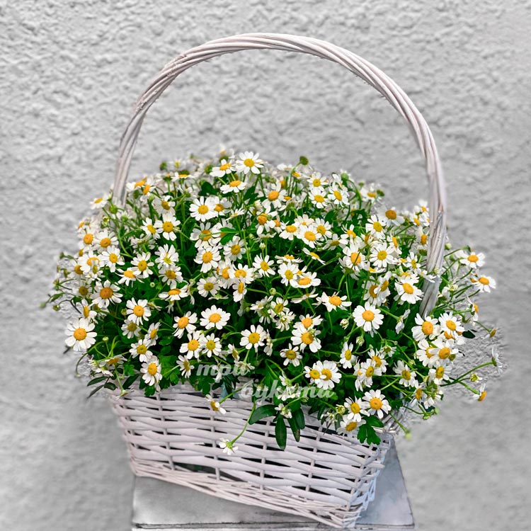 Небольшая корзинка с ромашками