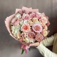 Нежный букет гортензий, роз и гвоздик